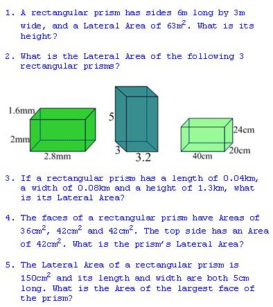 Lateral Area of a Rectangular Prism Exercises