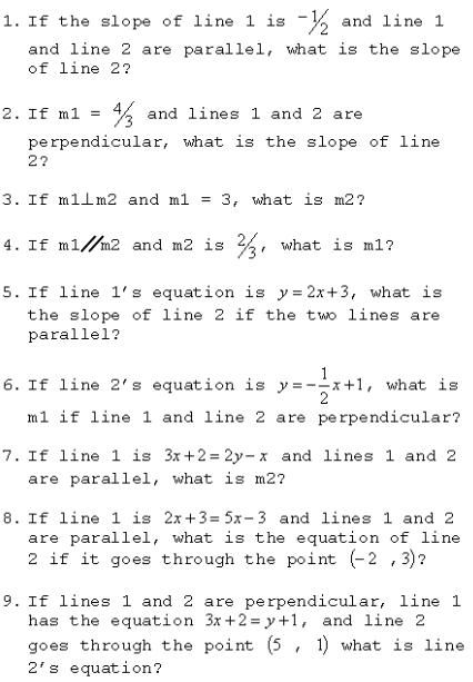 Back to Parallel and Perpendicular Slopes